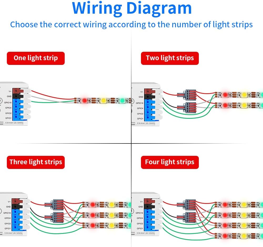 This controller offers four-channel independent control, allowing you to drive and individually manage up to four digital LED strips such as WS2811, WS2812, SK6812, and WS2815 for multi-zone lighting effects. Segmented control can be configured directly within the WLED app.