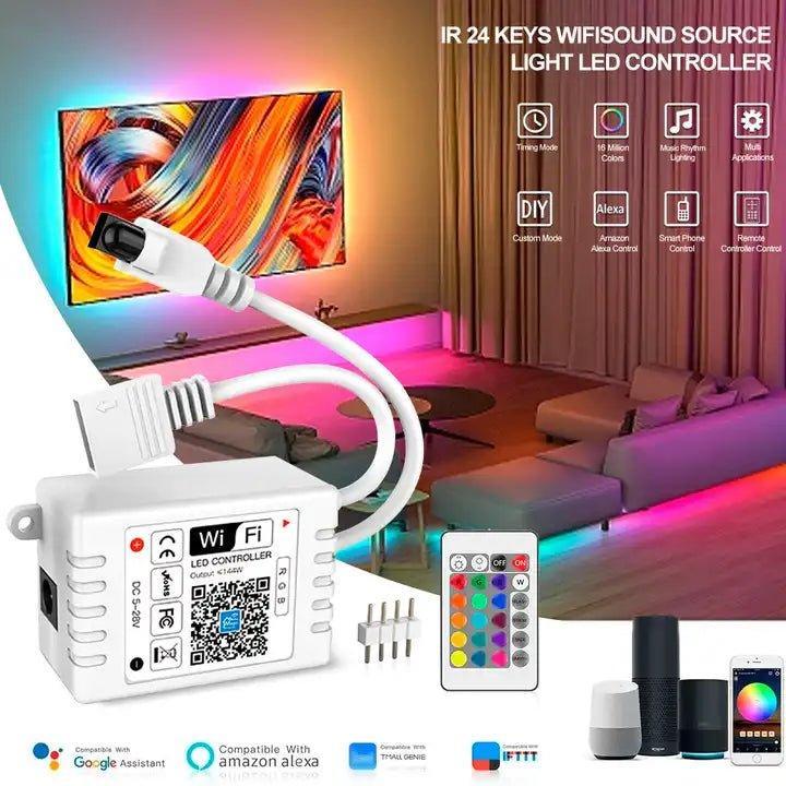 RGB LED Strip with WiFi Controller DC 24V 10m One Length 5050 IP65 Waterproof 60LED/m Full Kit