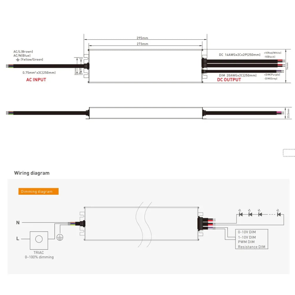 The Premium Hybrid Series 24V 300W dimmable LED driver offers outstanding versatility with its advanced 5-in-1 dimming options, supporting 0-10V, 1-10V, 10V PWM, and resistance dimming. Designed for superior visual comfort, it features smooth soft-on and fade-in functions, operating completely flicker-free in line with IEEE1789 standards. With a high efficiency rating of 90%, built-in protection mechanisms, and a long lifespan of up to 50,000 hours, it ensures both performance and durability. Its IP67 waterproof rating makes it ideal for various lighting applications. Fully compatible with most major lighting brands, it also supports both leading-edge and trailing-edge dimmers for maximum flexibility.