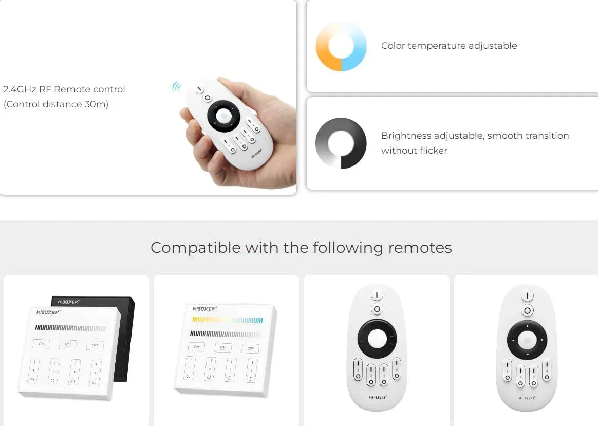 • Compatible with Mi-Light / MiBoxer 2.4GHz series remote