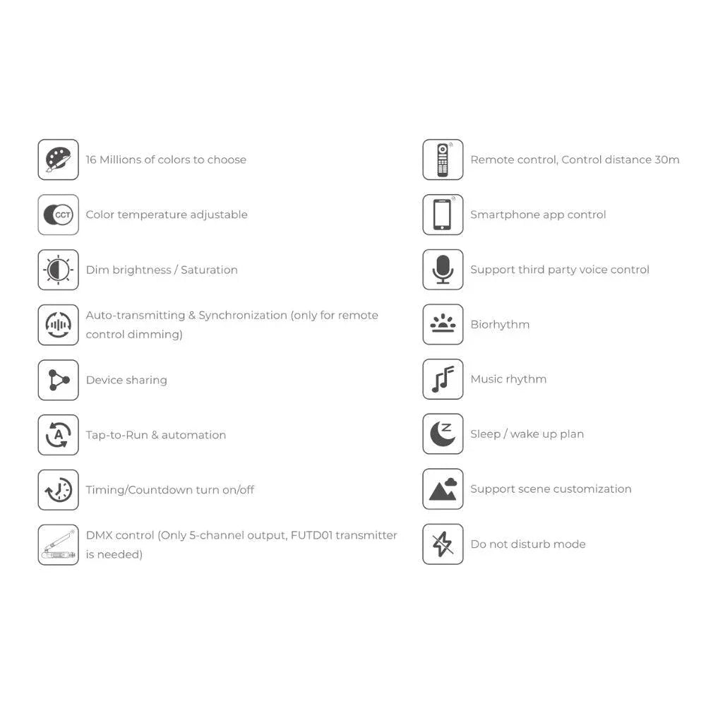 • 16 Millions of colors to choose, color temperature adjustable, brightness and saturation controllable