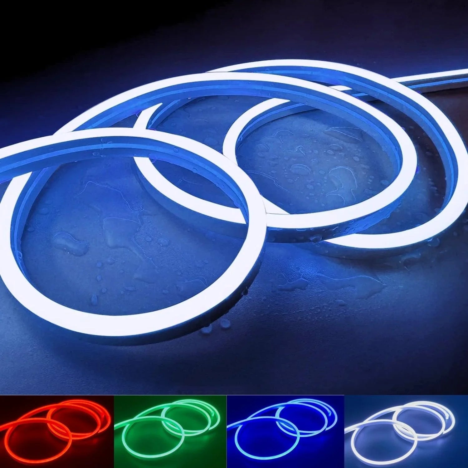RGB Neon Flex 6x12mm has a translucent High-quality Silicone cover that offers uniform light and performs better than the standard Strip lights with visible individual LED Chips. Because it’s so flexible, its installation is simple and requires clips to be installed anywhere and to adapt it to all sorts of corners, logos, signs, etc. The Waterproof feature of the Light makes it ideal for Indoor and Outdoor (light splashes) use.