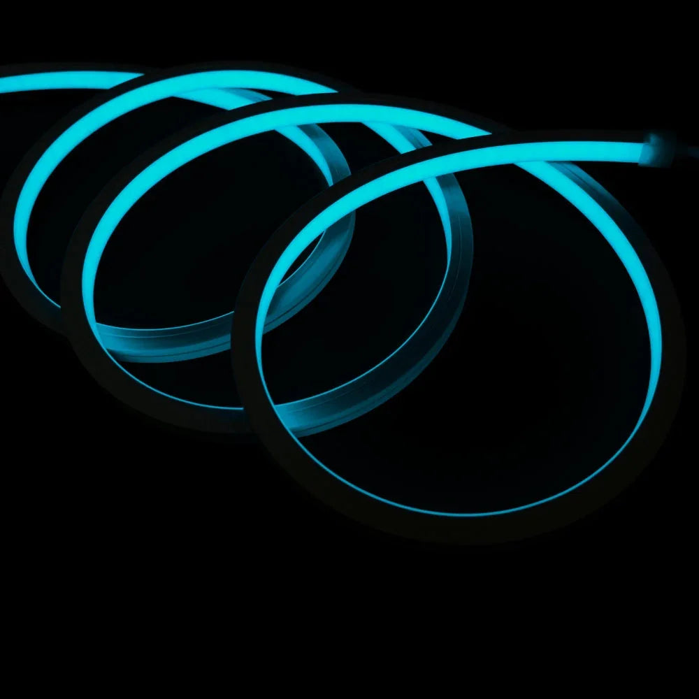 Perfect for both indoor and outdoor use, this neon flex is widely used in commercial settings such as restaurants, hotels, and retail spaces, as well as residential applications including pergolas, decking, and garden features. It supports continuous runs of up to 20 metres from one end, or 40 metres with double-sided power, ensuring uniform brightness across longer installations.