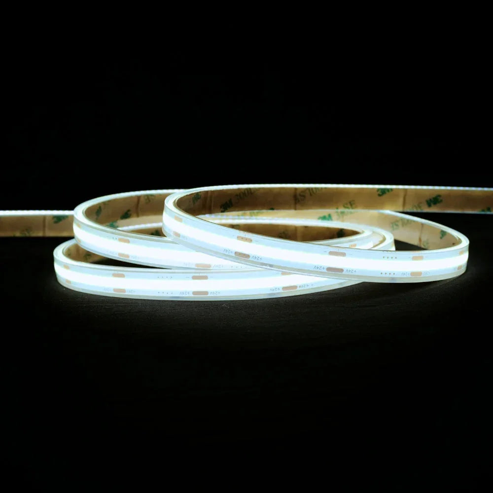 The Ultra Long COB LED Strip 24V is designed for extended runs up to 10 metres from a single power feed, ensuring consistent brightness with no voltage drop. Supplied in 10m rolls, the strip can be cut every 3.2cm (31.25mm) for precise customisation.