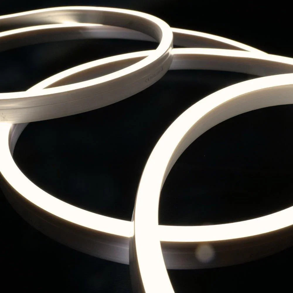 Our high-quality IP67 LED Neon Flex is horizontal bending which emits a bright warm white LED light from the top of the flex. Our led neon flex is a low voltage, compact, highly flexible, Pixel-free, Linear lighting solution. It can do a continuous run of 20 metres without any voltage drop and 40 metre if powered from both ends.