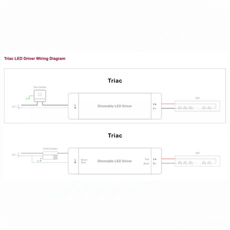 No. Always match your Triac dimmable LED driver output voltage precisely to your LED strip voltage. Connecting a 24V Triac dimmable driver to a 12V strip, or a 48V Triac dimmable driver to a 24V strip, will immediately damage the LEDs due to overvoltage. Constant voltage LED drivers do not automatically adapt their output to match the connected load. If your installation requires multiple voltages, always use a dedicated driver for each voltage. If you are unsure which driver is correct for your LED strip, check the voltage marking printed on the strip backing or contact our team for advice before installation.