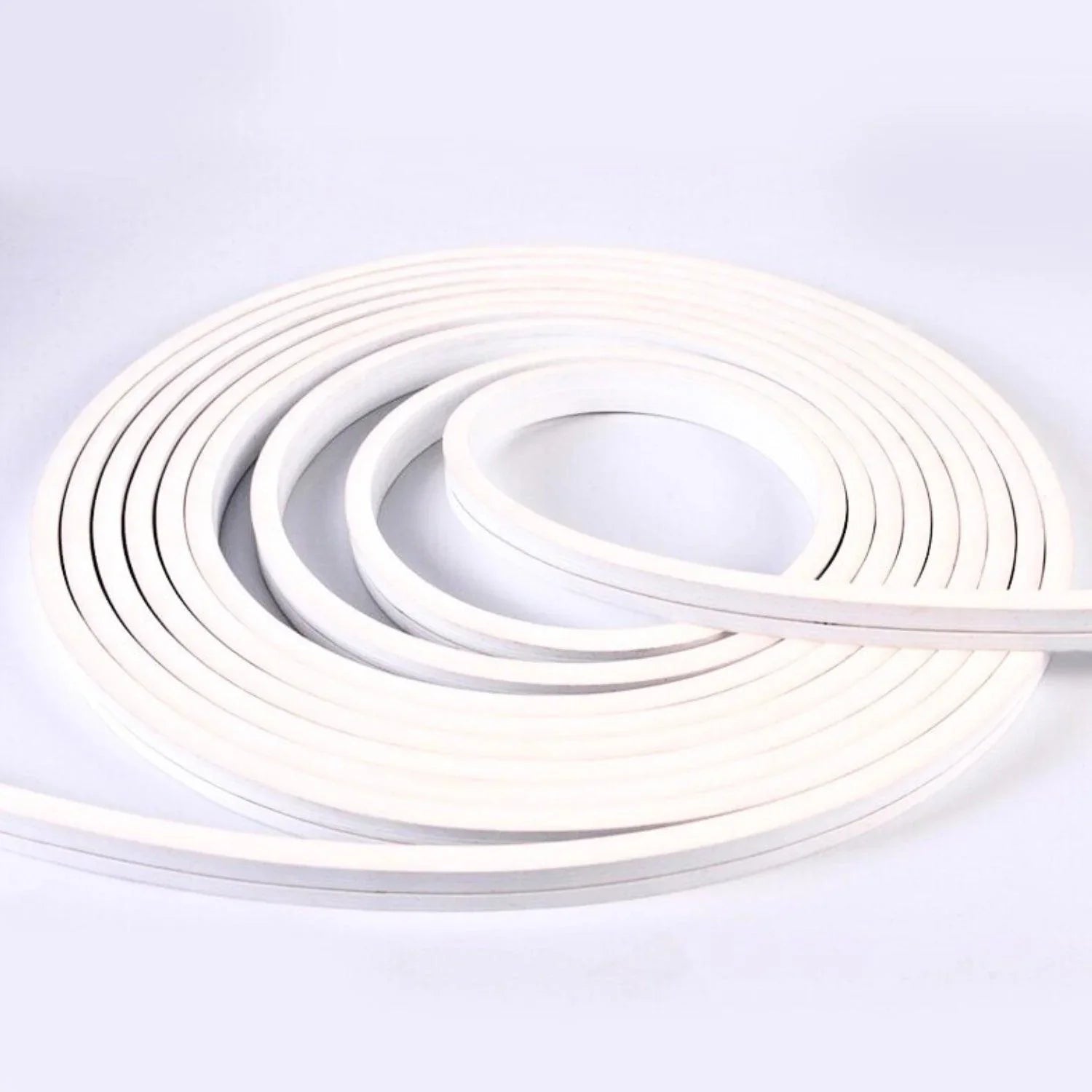 Neon Flex is a durable fully diffused linear light perfect for furniture installations thanks to it’s ultra slimline micro profile. This neon can be cut easily to your desired lengths at the allocated cut points. Maximum length at any time is 5 metres before visible voltage drops occur. You can get 10m continuous length, however, you need to power the led neon flex from both ends.